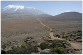A fairly inhospitable place, there is not much life in the desert apart from some tussock grasses and a few small flowers. It is brown, dusty and dry. With little to no shelter from the elements, intense radiation plagues the day and at night temperatures plummet to freezing. It is however a great part of the trek, as for the first time Kibo (Mount Kilimanjaro’s highest peak) and its summit come in to full view.