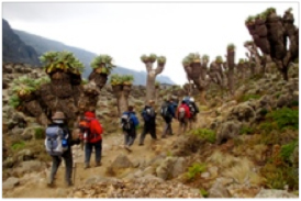 I’ve heard it said that there are four (sometimes five) temperate zones that climbers encounter along the Kilimanjaro climb. It means there is a lot of preparation and gear needed to address the changing environment. And yet all must fit within the weight restrictions for the trail. Here’s a brief outline of the temperate zones (courtesy of Kilimanjaro Challenge):